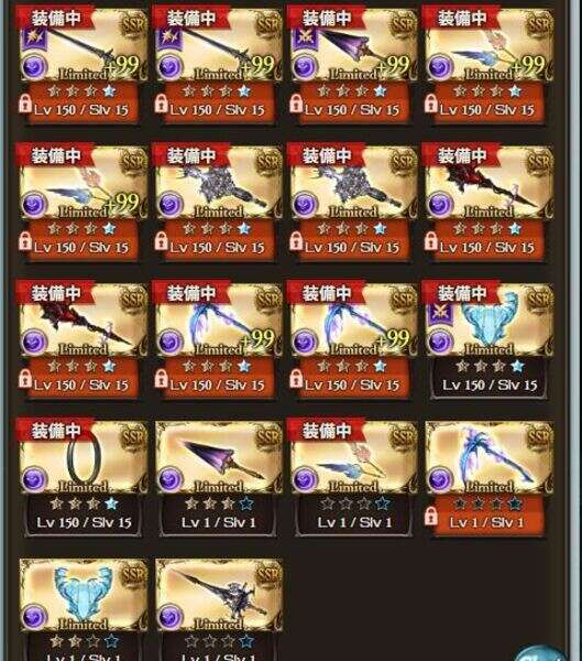途中まで進めてます。 ssr武器はリミテッド武器のみ全て保管してます。 金月130以上 フレズ所持 ヒヒ25以上 ダマ5以上 金剛5以上 エヴァコンプ 7000以上 グラブルコイン所持