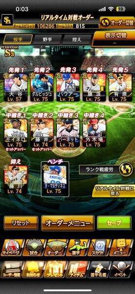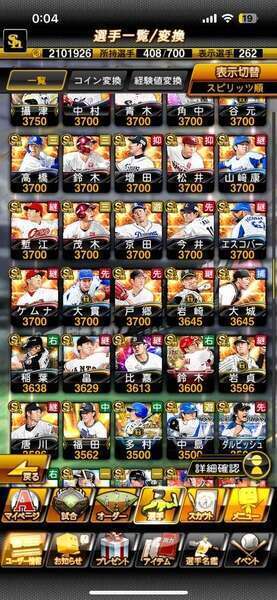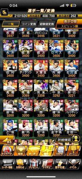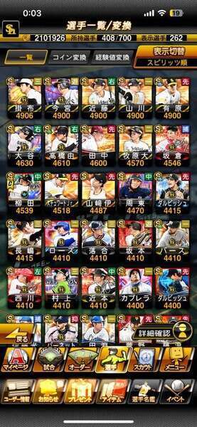 エナジー4324個 選手寮Aランク(750体)のレベルはMAXです、S極60体、極外69体巨人純正、12球団、最新WS大谷・千賀、巨人純正、12球団、リアタイ名人2位 現在もプレイしている為変動
